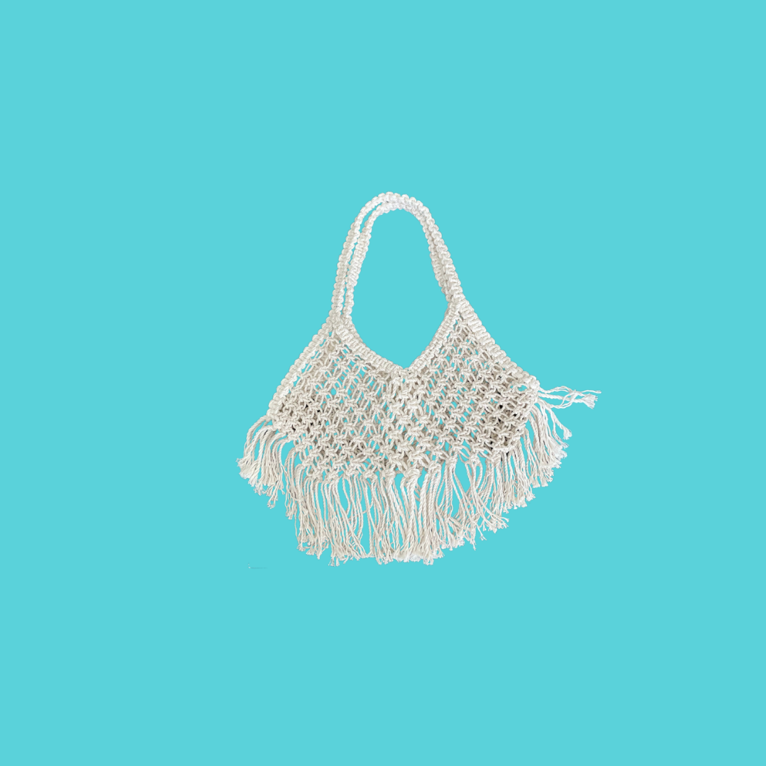This boho bag is made of natural colored cotton cord. It measures 10 inches in height and 20 inches wide. It is reversible for two unique styles depending your vibe.